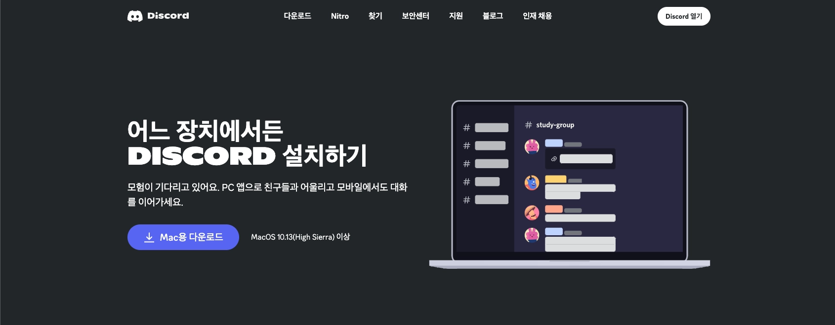 아래 링크를 클릭하여 디스코드를 다운로드 및 설치 해주세요!