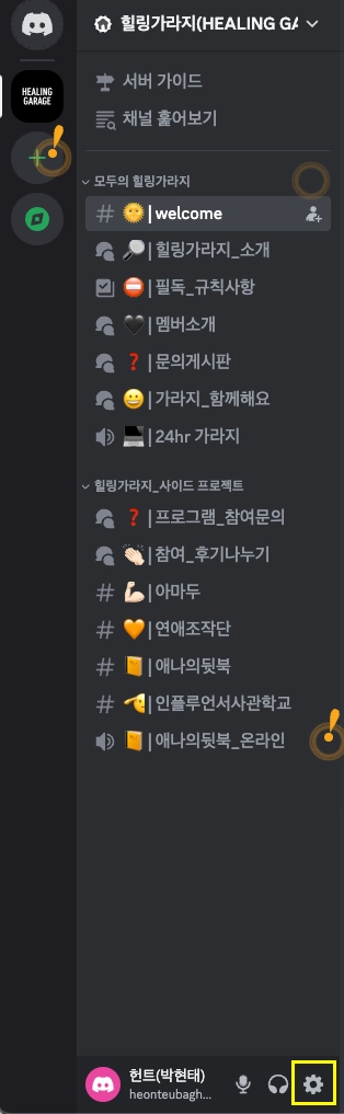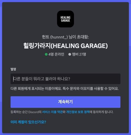아래 링크를 클릭하여 힐링가라지 디스코드 채널에 입장해 주세요!